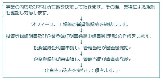 ベトナムにおける会社設立は、以下の順序で実施されます。
