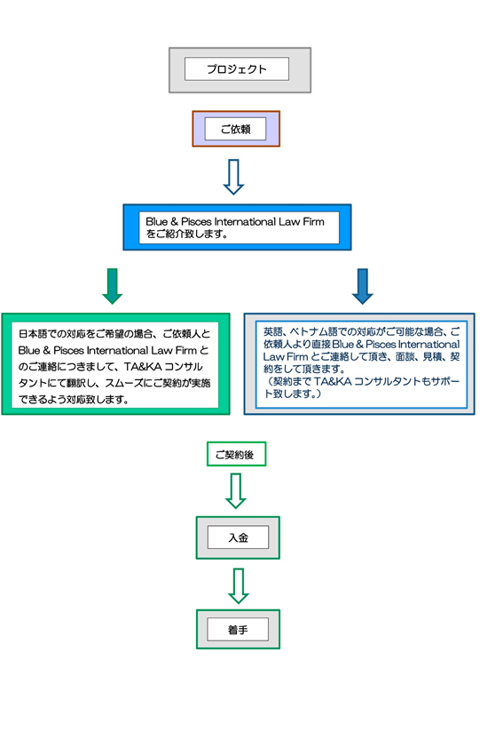 ベトナム進出、企業間紛争等の具体的なプロジェクトをご希望のお客様は、以下のような対応となります。実施事項が明確でないなどのご相談は、個別対応となります。